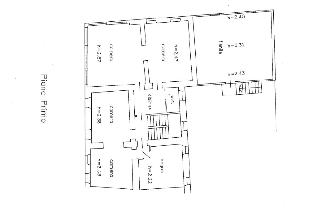 La proprietà, di circa 342 mq su tre livelli, è composta da 16 vani luminosi che conservano tutto il fascino dell'epoca, con dettagli originali come camini in pietra, scale storiche e ampie finestre che illuminano gli ambienti.